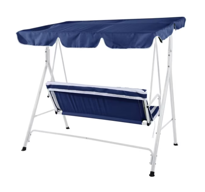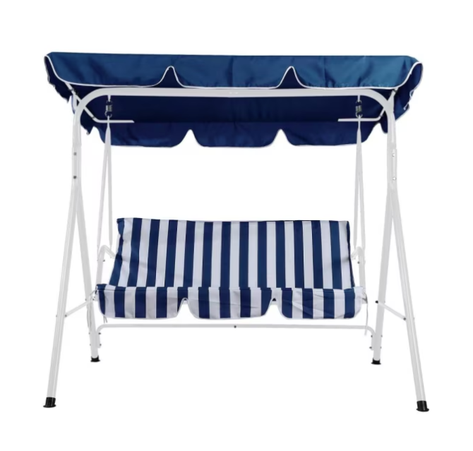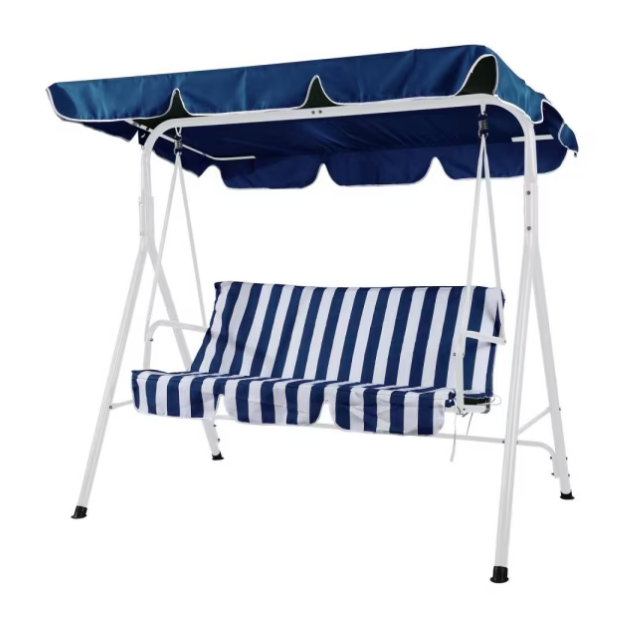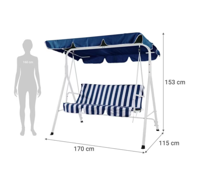 Descripción | Sillon columpio 3 personas rayas azul